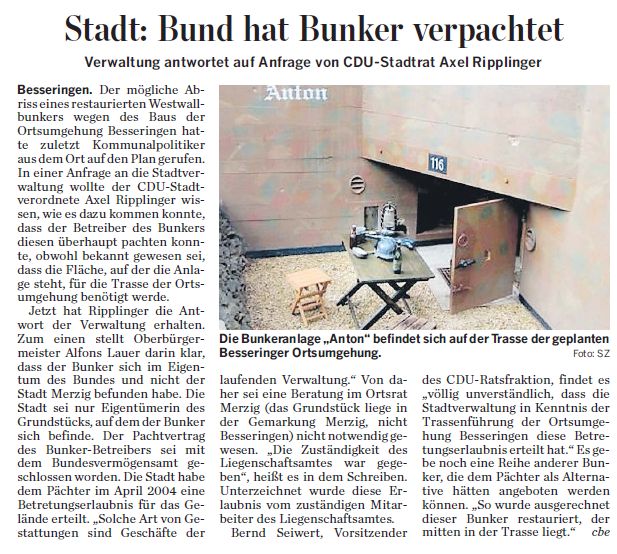 Bunker "Anton" - Anfrage Axel Ripplinger